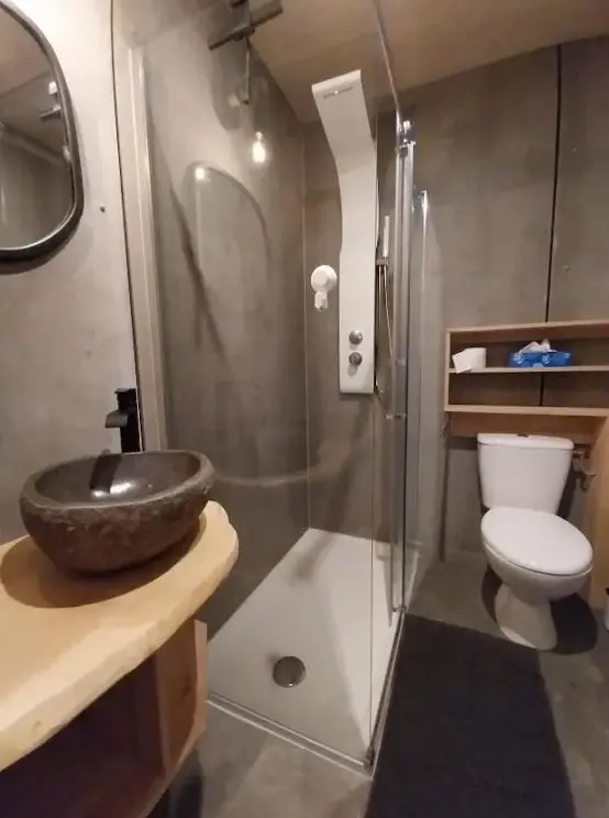 Nichts zu melden! Sogar der kleine Bereich ist durch die schöne Höhe unter der Decke ausgeglichen, Sie fühlen sich überhaupt nicht eng. Der Teich bringt auch keine Mücken, alles ist Nickel! :)